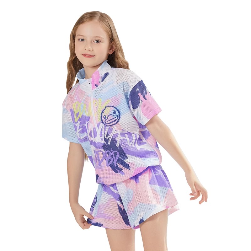 新款 防晒保守遮肉泳装 度假亲子泳衣女童 短袖 B.Duck亲子泳衣母女装