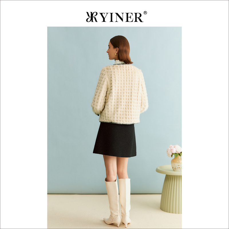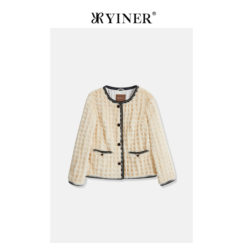 YINER音儿专选女装 水貂毛皮兔毛皮草闪丝短外套 冬季