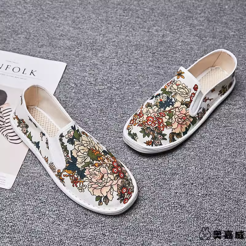 休闲居家一脚蹬 透气千层布底乐福鞋 养脚布鞋 老北京防臭男女黑夏季
