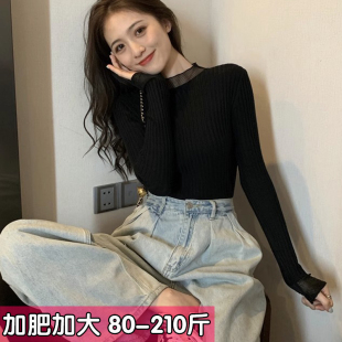 黑色蕾丝针织衫 2025新款 上衣胖mm冬 毛衣女套头内搭网纱打底衫 大码