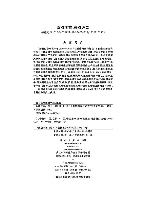 遥感调查与评估 2010年 新疆生态环境十年 2000