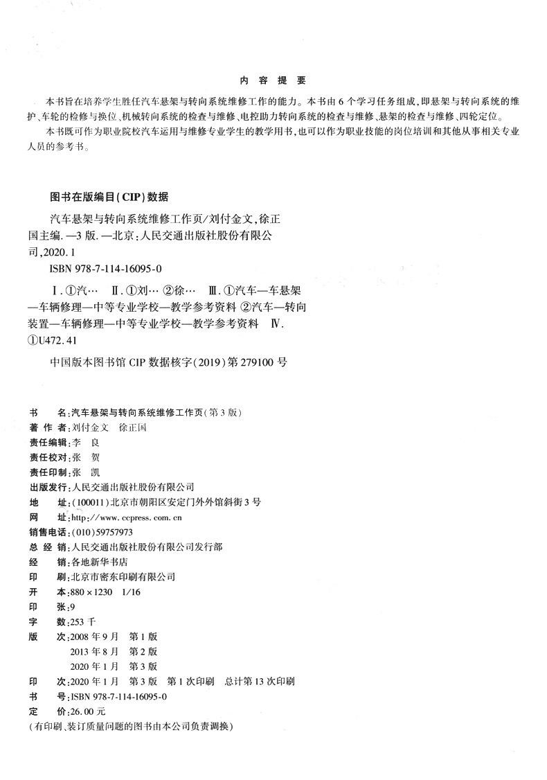 第3版 汽车悬架与转向系统维修工作页 人民交通
