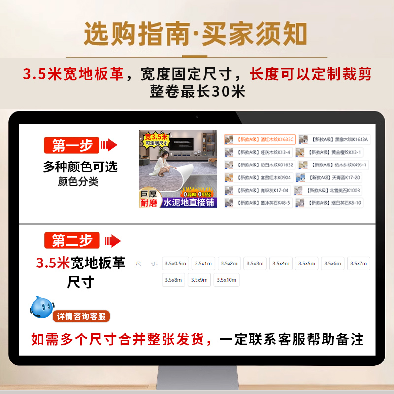 3.5米宽地板革水泥地直接铺加厚耐磨防水家用pvc塑胶地板贴自粘