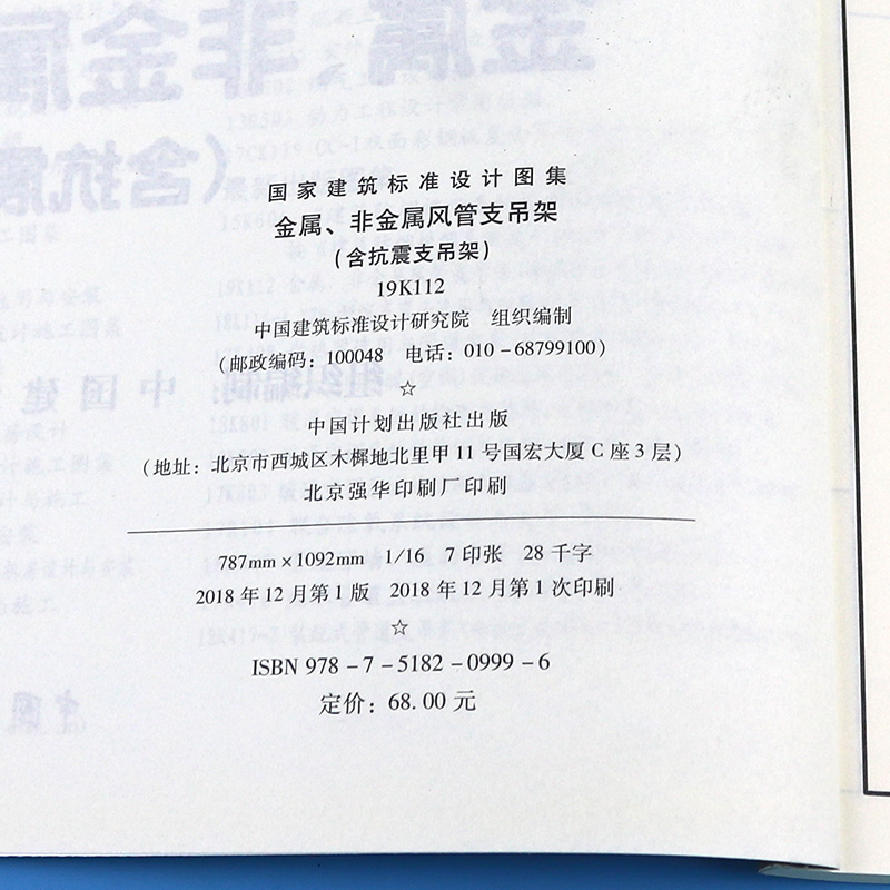 金属 非金属风管支吊架 含抗震支吊架 正版 国家建筑标准设计图集 19K112 替代08K132 中国建筑标准设计研究院 现货