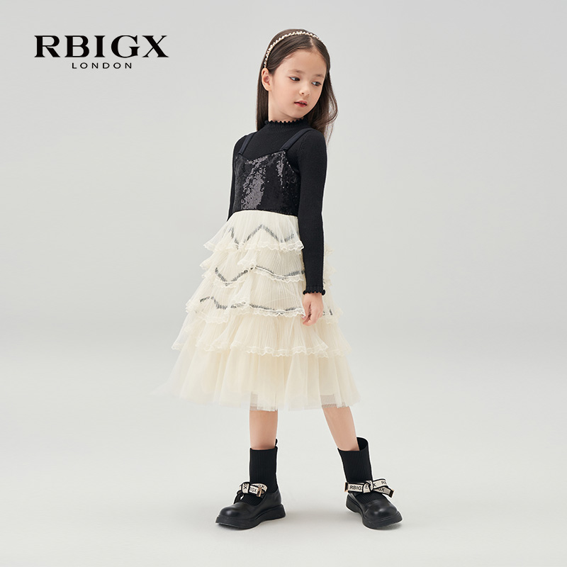 冬季 RBIGX瑞比克童装 丝绒珠片织带花边连衣裙蓬松公主裙 清仓