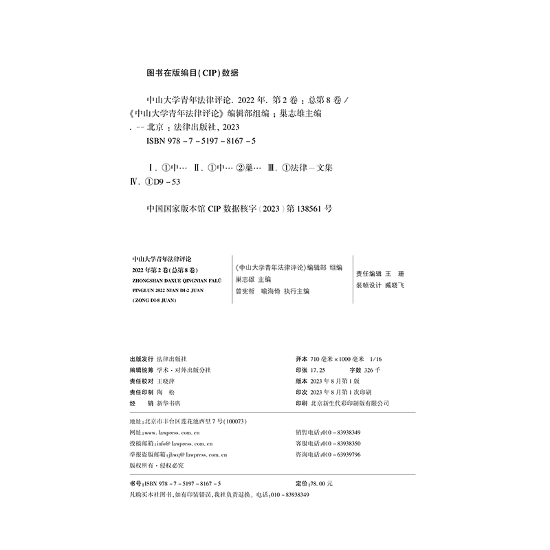 2022年第2卷 总第8卷 巢志雄主编 正版 社 中山大学青年法律评论 法律出版 9787519781675 2023新书