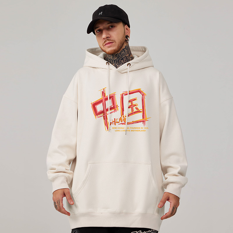 复古潮牌中国风卫衣胖子男生外套连帽宽松加肥加大码 带帽套头加绒