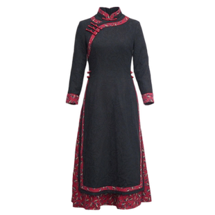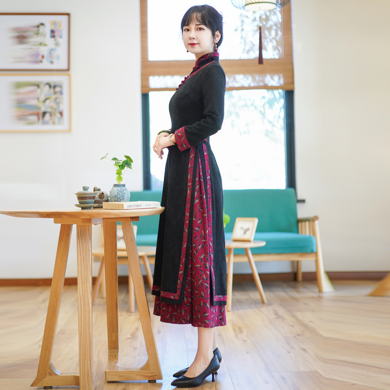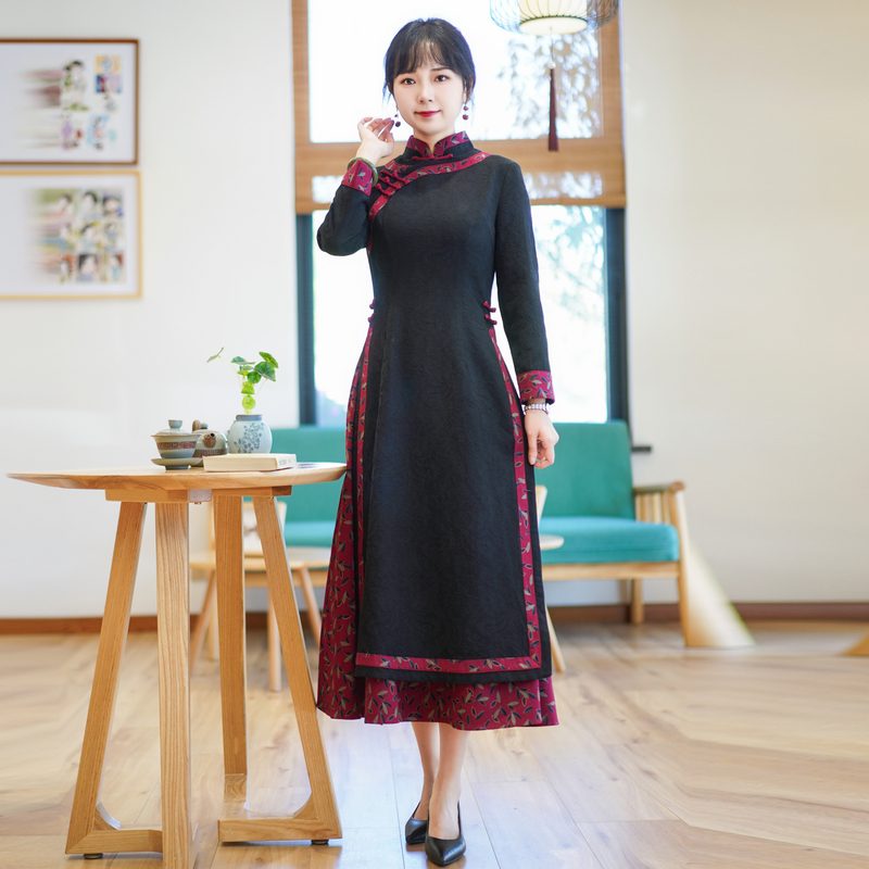连衣裙 中国风女装 23J278 妈妈秋冬新款 如意风改良奥黛旗袍年轻款