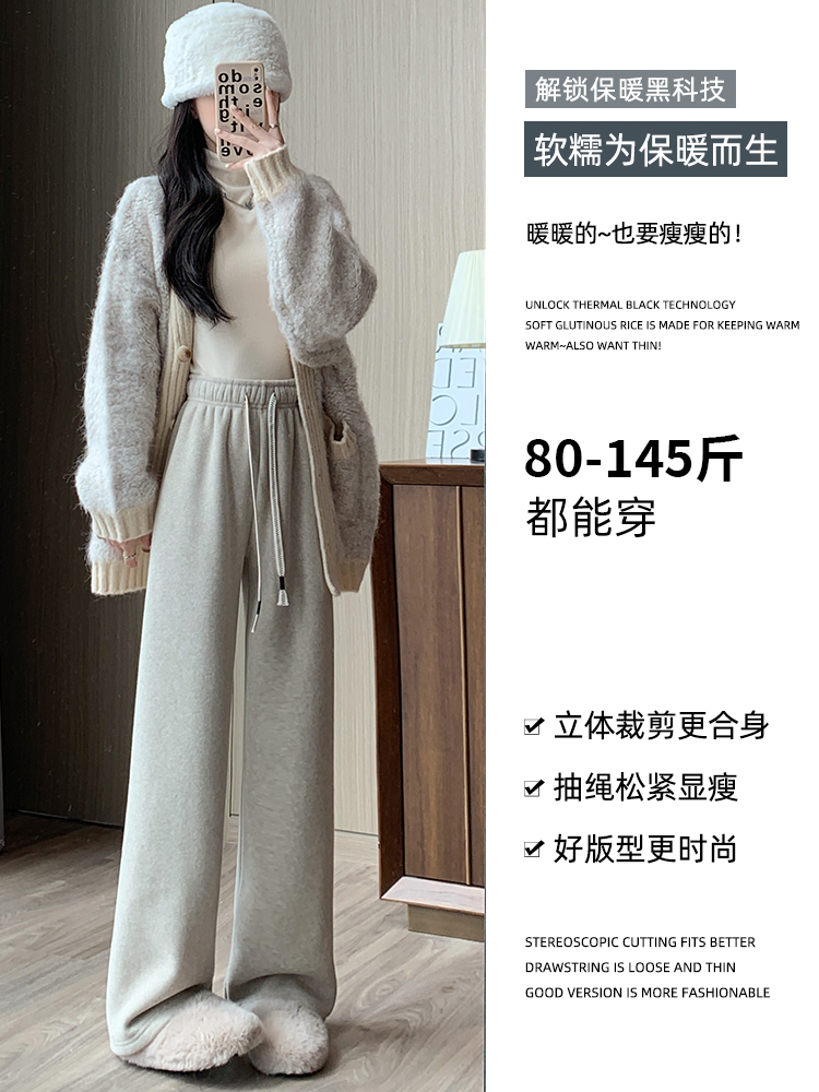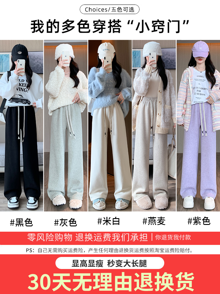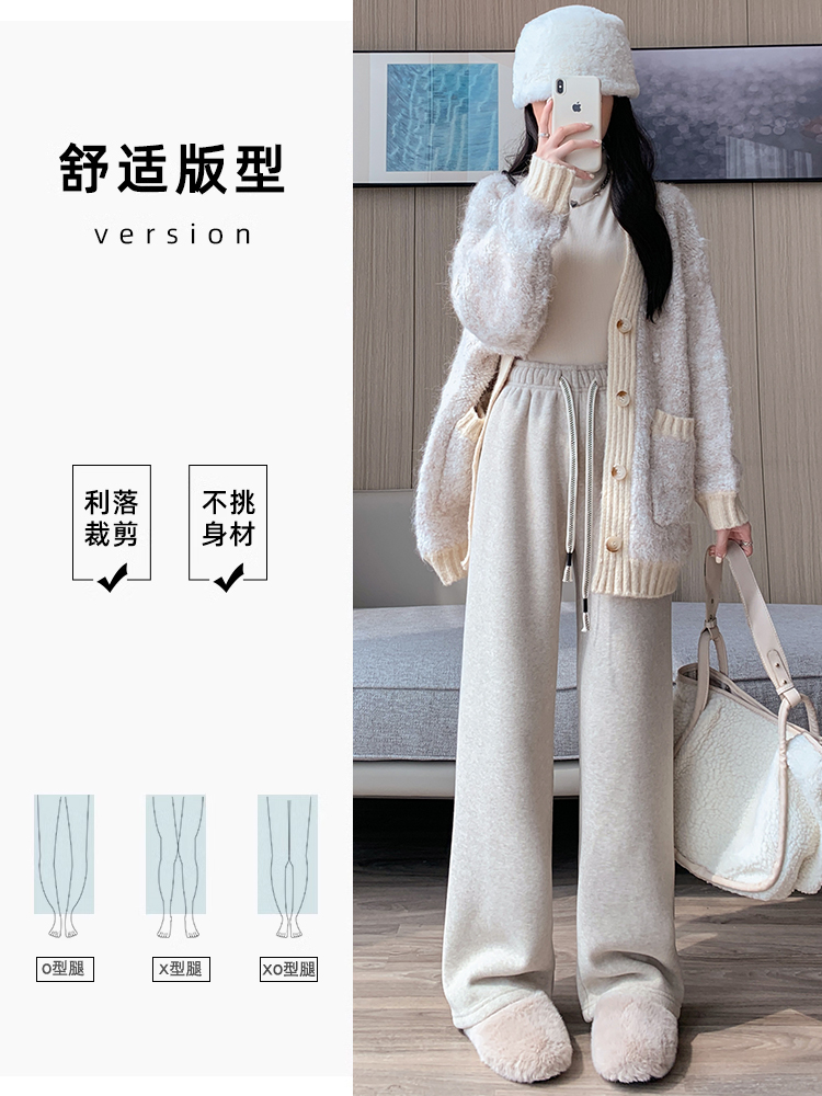 直筒裤 加绒阔腿毛巾裤 高腰垂感休闲羊羔绒窄版 秋冬季 子 女2025新款
