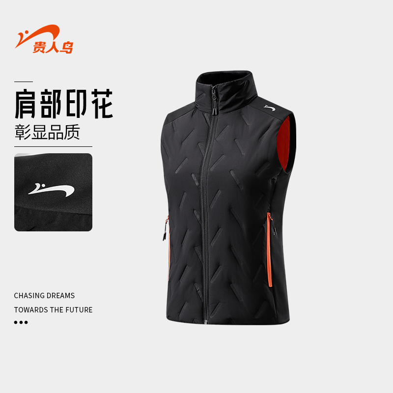 冬装 贵人鸟夹棉背心男士 户外运动马甲情侣款 保暖外套女款 上衣 冬季