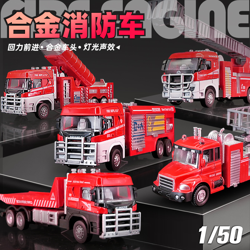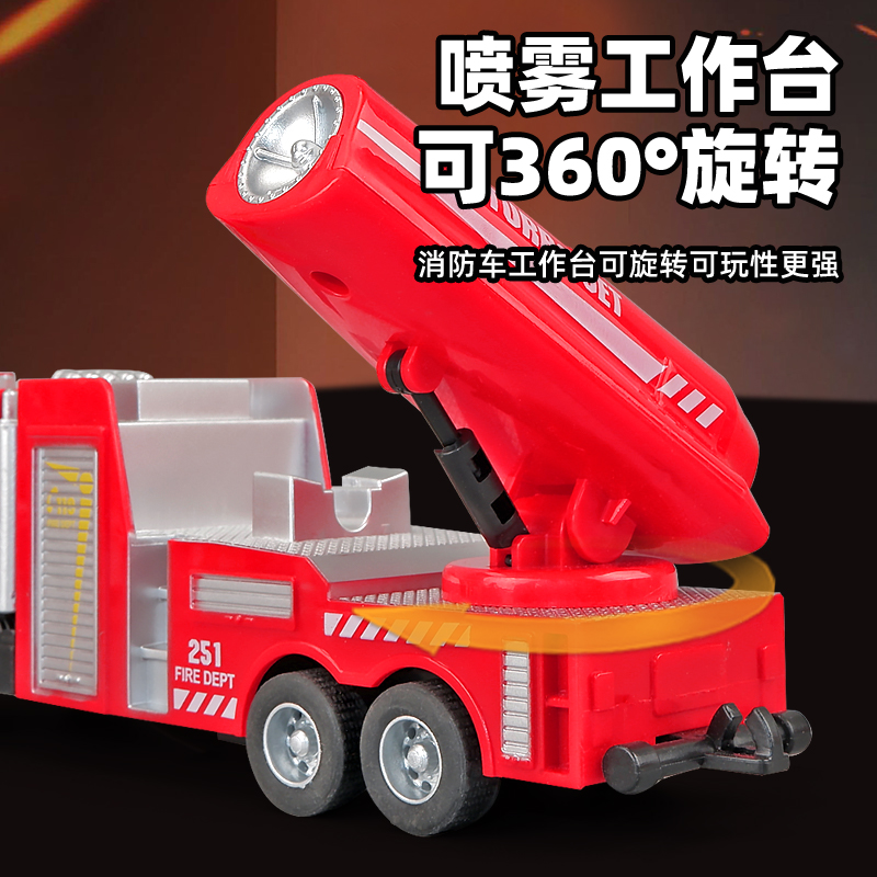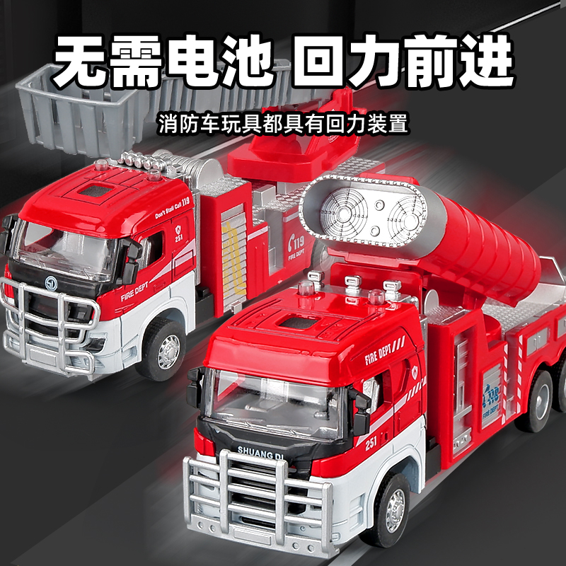 儿童消防车玩具男孩3岁4岁云梯救援车可喷水合金救火车模型小汽车