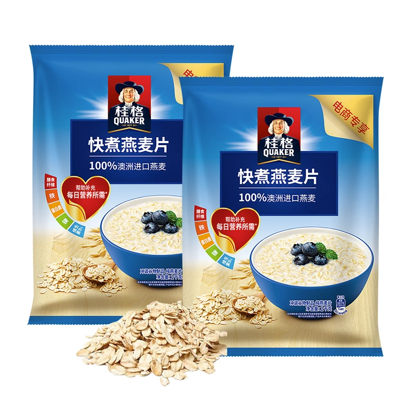 QUAKER 谷物食品粗粮懒人早餐 桂格原味燕麦快煮燕麦片1000g袋装