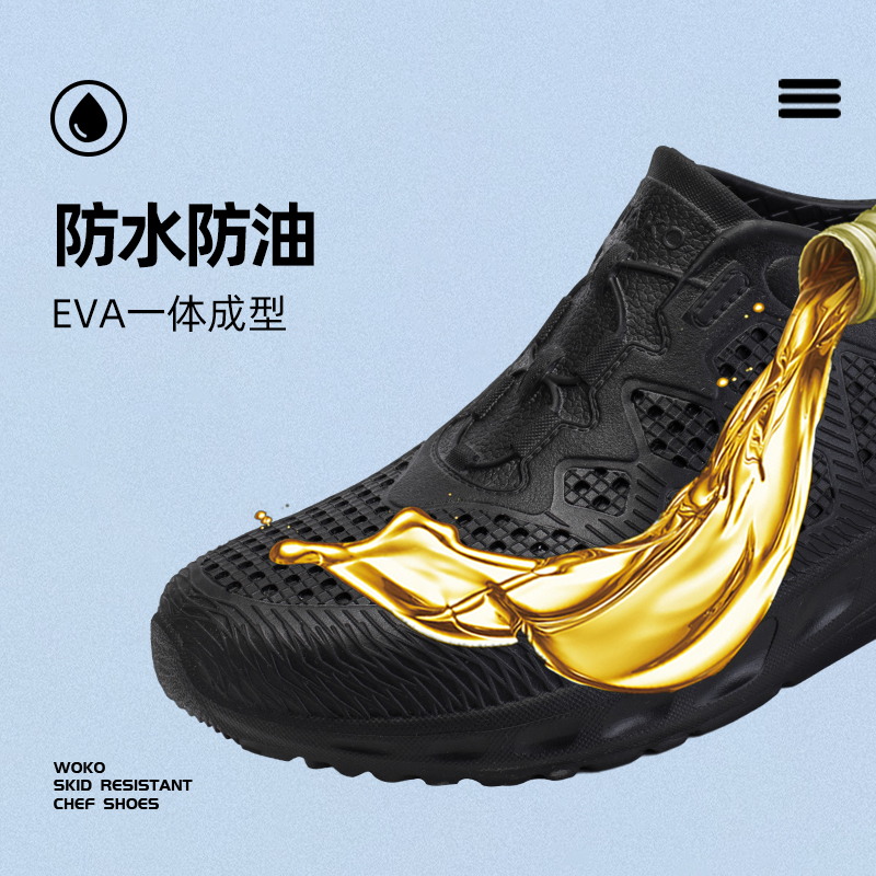 轻便耐磨春秋男鞋 防滑防水防油厨房工作鞋 厨师鞋 wako滑克专业男士