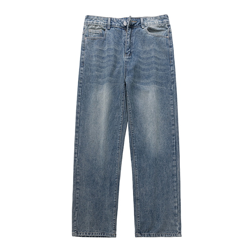 潮牌vibe宽松阔腿裤 查尔斯桃心 春秋季 男美式 渐变泼墨弯刀牛仔裤