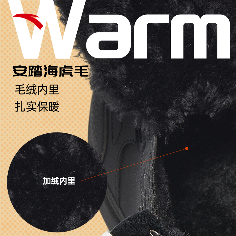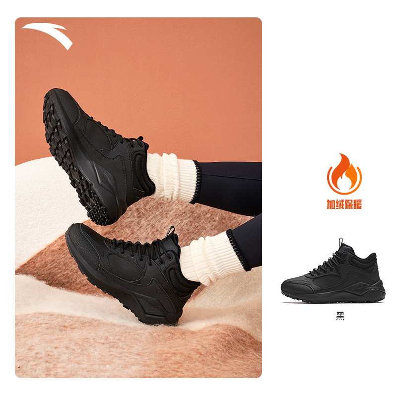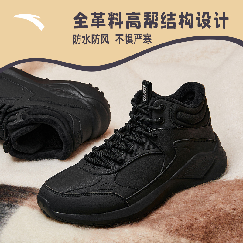 黑色运动鞋 安踏棉鞋 加绒保暖加厚休闲鞋 新款 户外雪地靴 女2025冬季