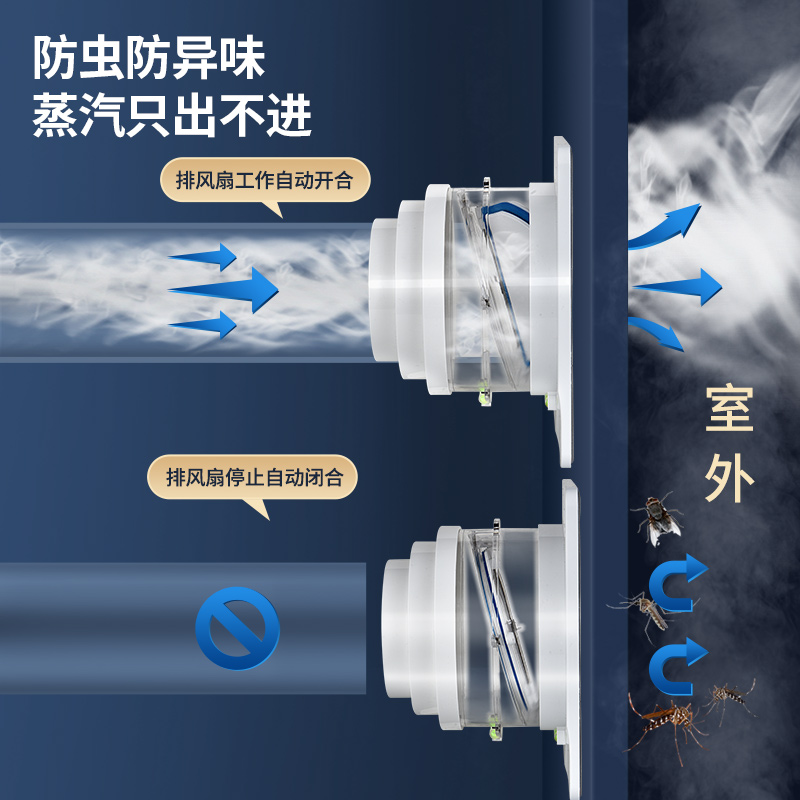 潜水艇卫生间止逆阀专用换气扇浴霸排气口通用厕所公共排风管止回