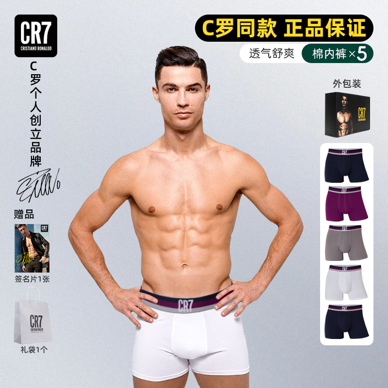 五条装 男士 纯棉内裤 短裤 CR7官方C罗25年秋季 抗菌运动四角内裤 新款
