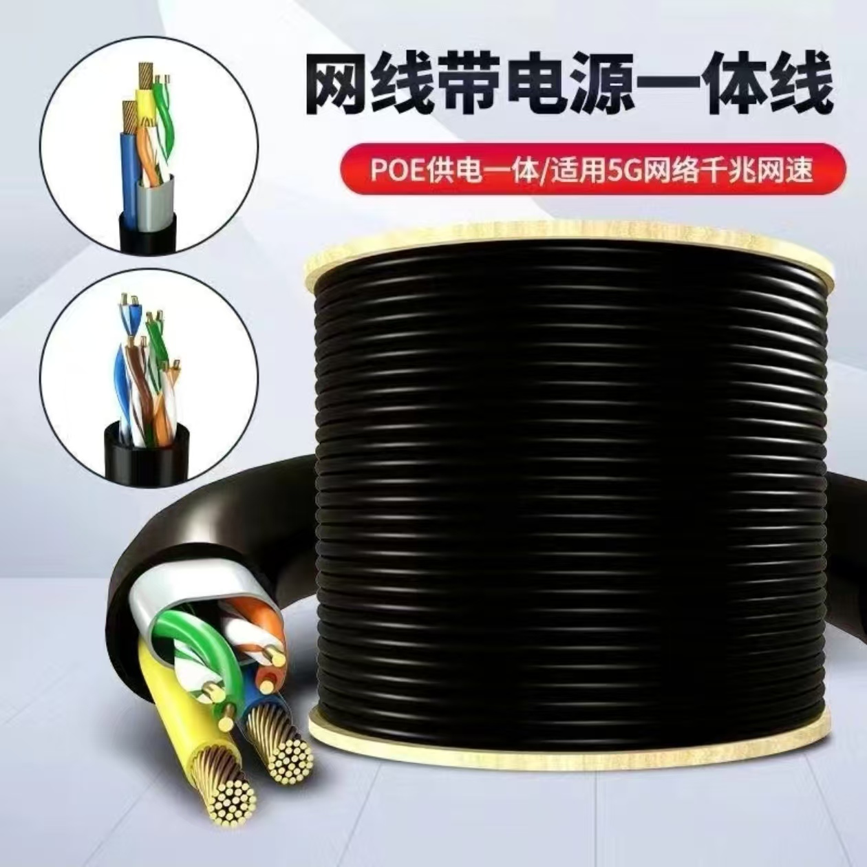 纯铜室外4芯8芯监控网线带电源一体综合线二合一poe供电通用网线