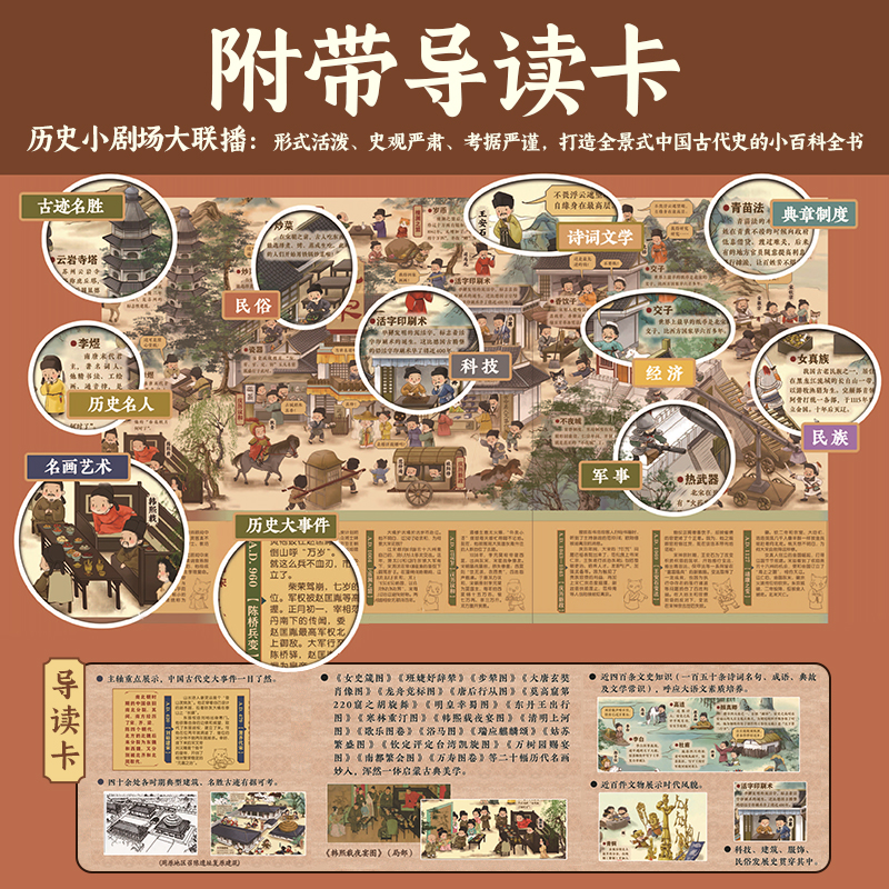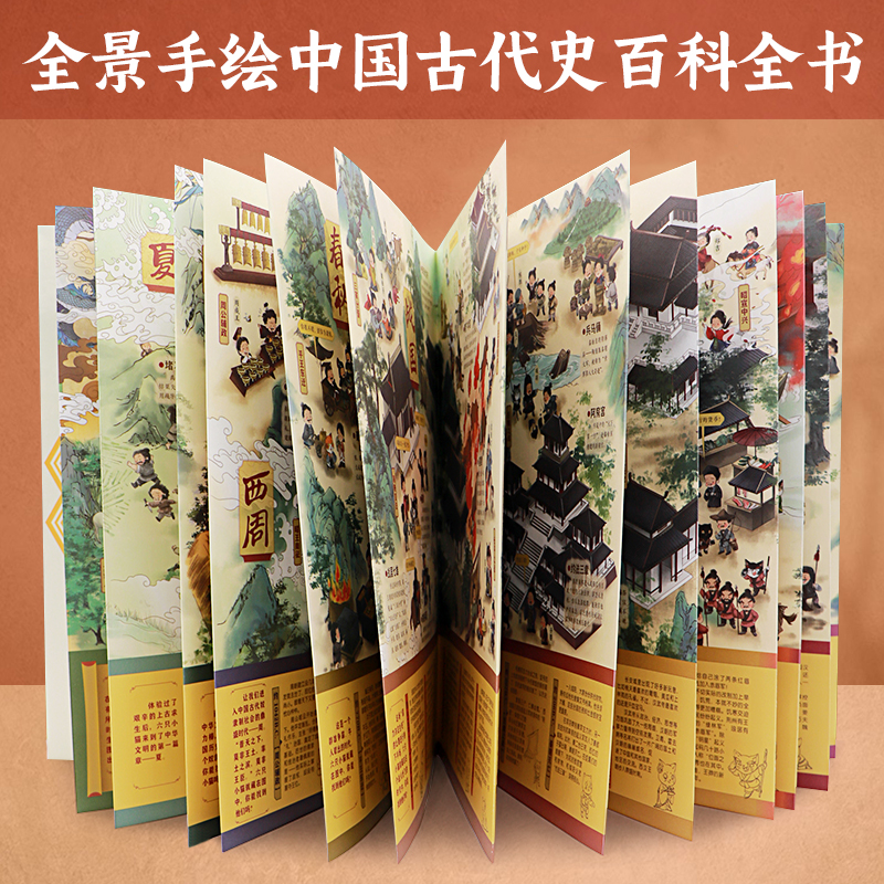 六只猫畅游中国古代史 中国古代史百科全书全景手绘百科模式 jt一卷书读懂中国古代史经折卷页 历史小剧场大联播打造全景式
