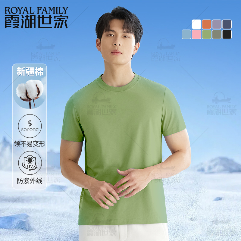 5A抑菌防紫外线圆领短袖 霞湖世家t恤男夏季 165 索罗拉凉感T恤