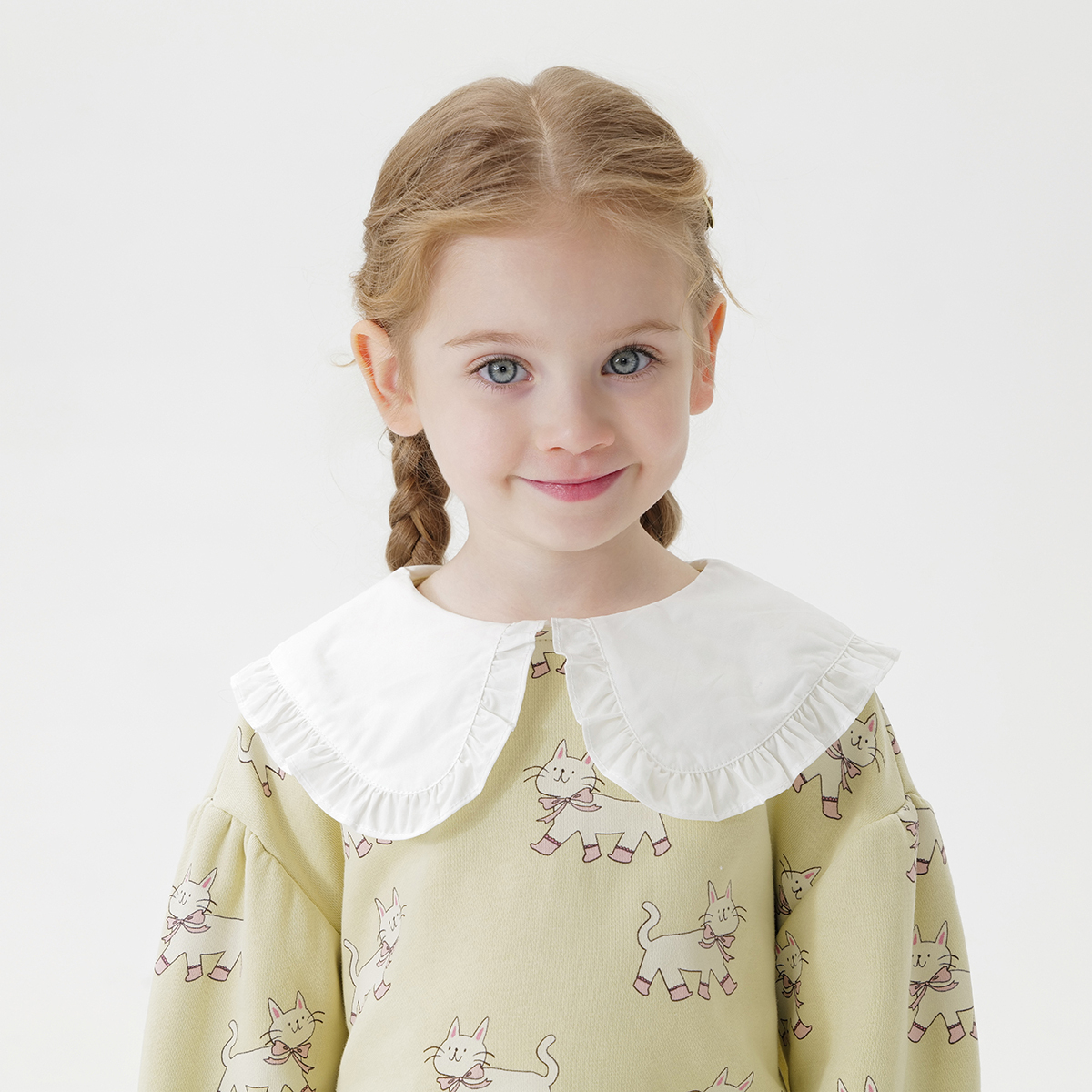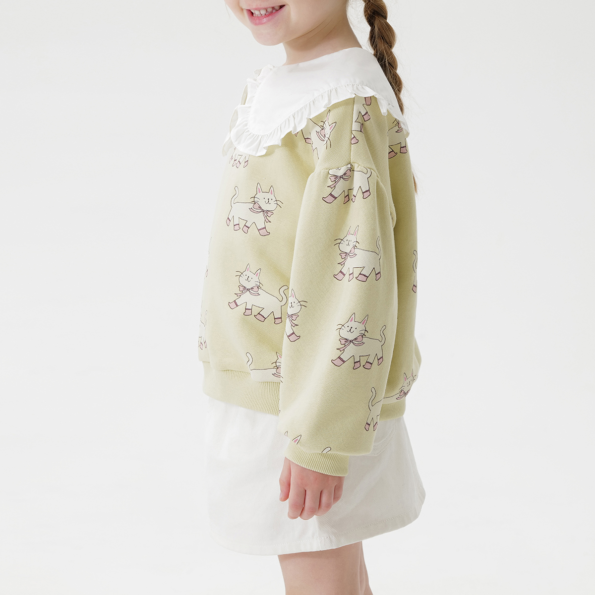 250211 新品 马克珍妮女童趣味猫咪娃娃领卫衣 宝宝上衣2025年春装