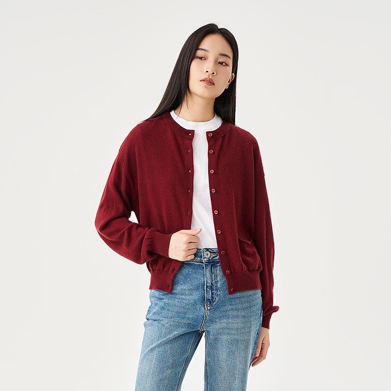 商场同款 2025新款 森马针织开衫 春季 基础圆领上衣 女短款 森柔毛衫