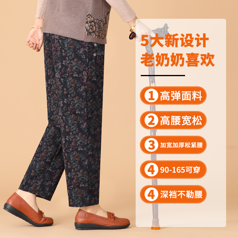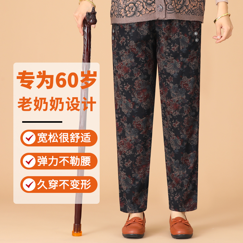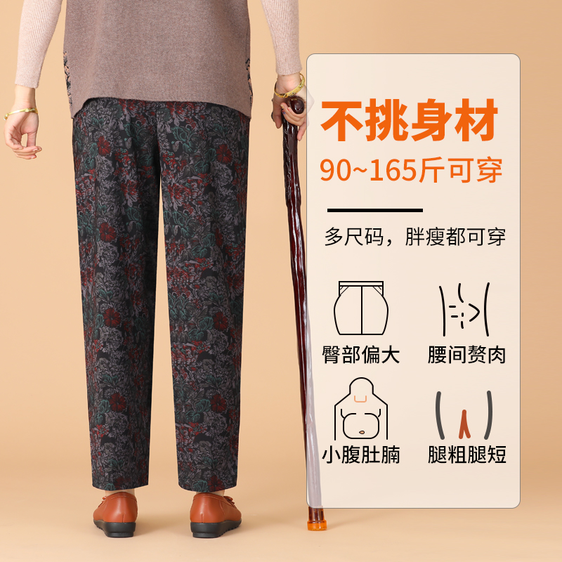 80岁老太太春秋长裤 子宽松加肥高腰70岁老人复古女裤 奶奶裤 春季
