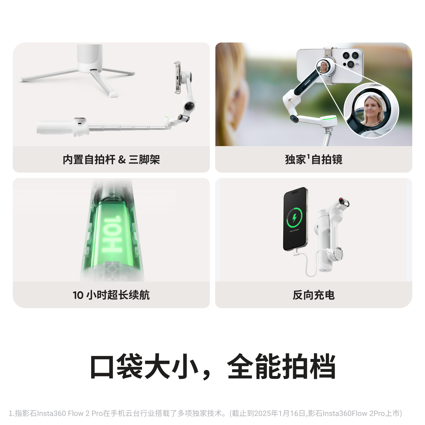 Flow 影石Insta360 Pro手机稳定器手持云台三轴增稳ai追踪防抖视频直播便携三脚架自拍杆补光灯 旗舰店