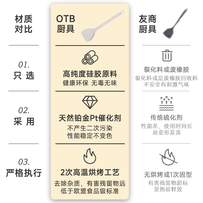 OTB食品级铂金硅胶锅铲家用不粘锅专用炒菜铲子耐高温长柄不伤锅
