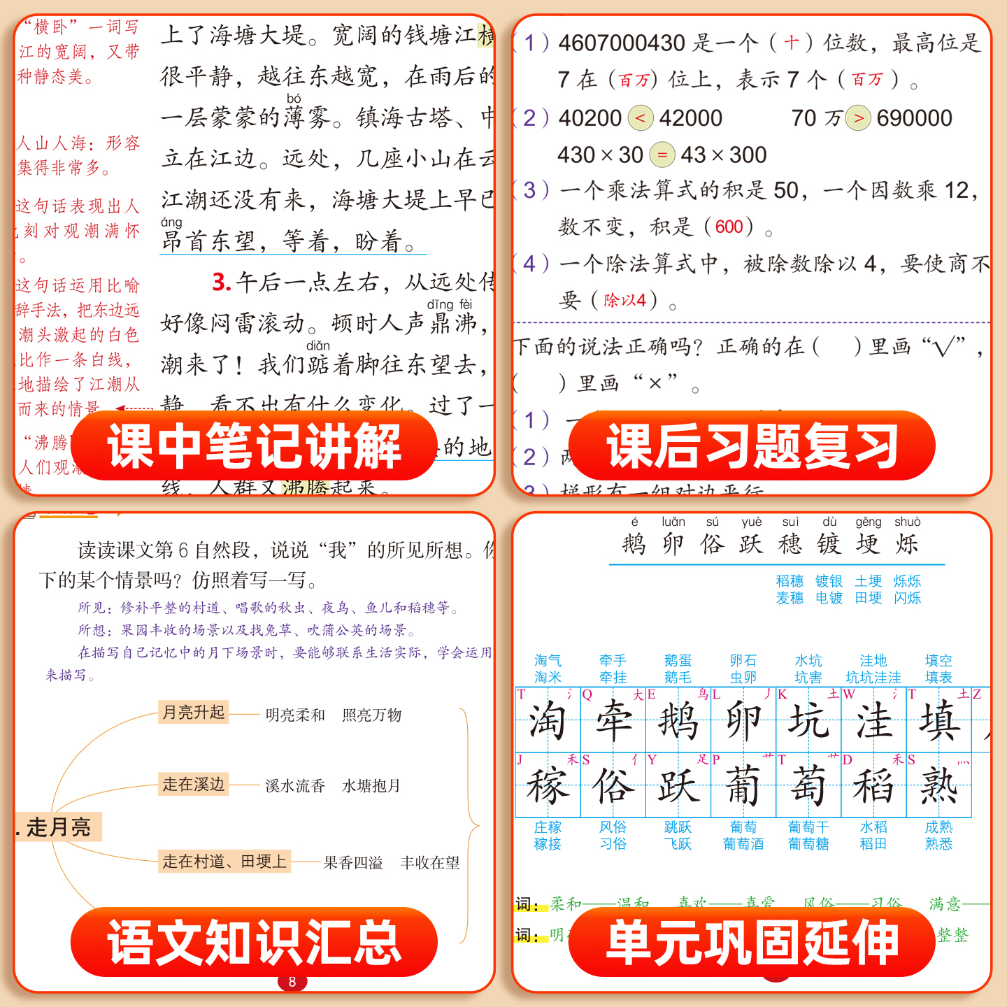 语文数学英语预习同步课本书四上教材解读全解小学生4年级下册状元 四年级上册课堂笔记人教版 学霸笔记黄冈随堂笔记 2025新版
