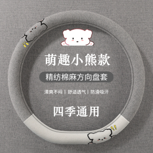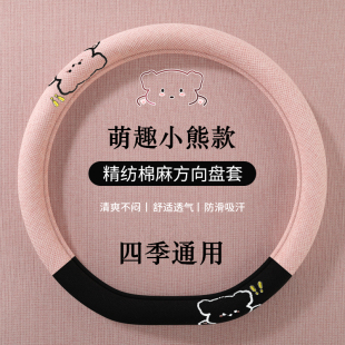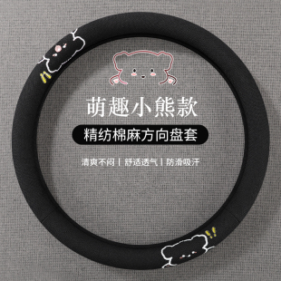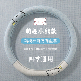 棉麻方向盘套四季 通用卡通汽车把套高级感超薄防滑吸汗保护套夏季