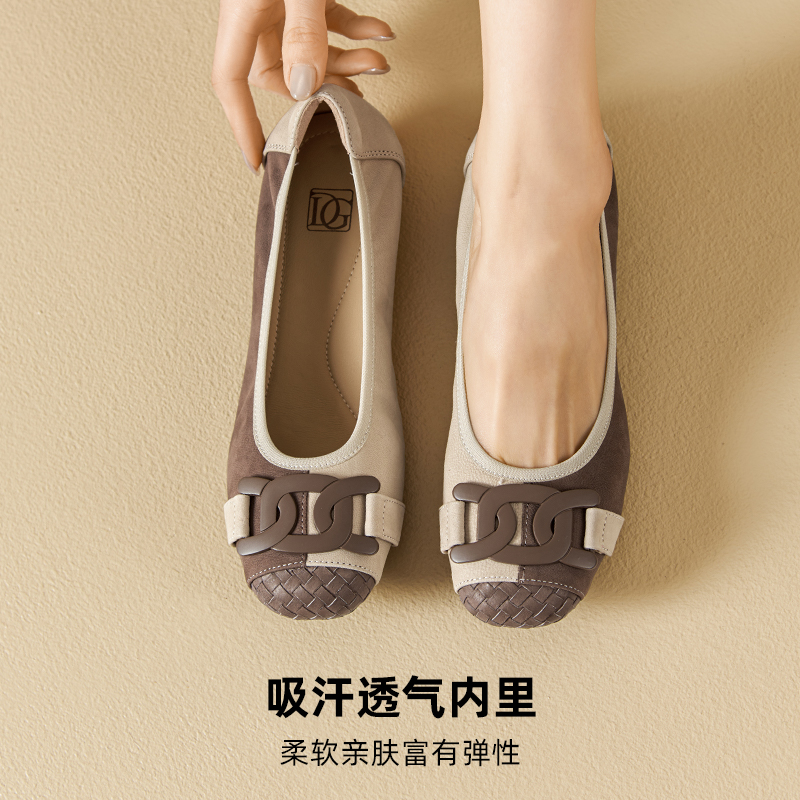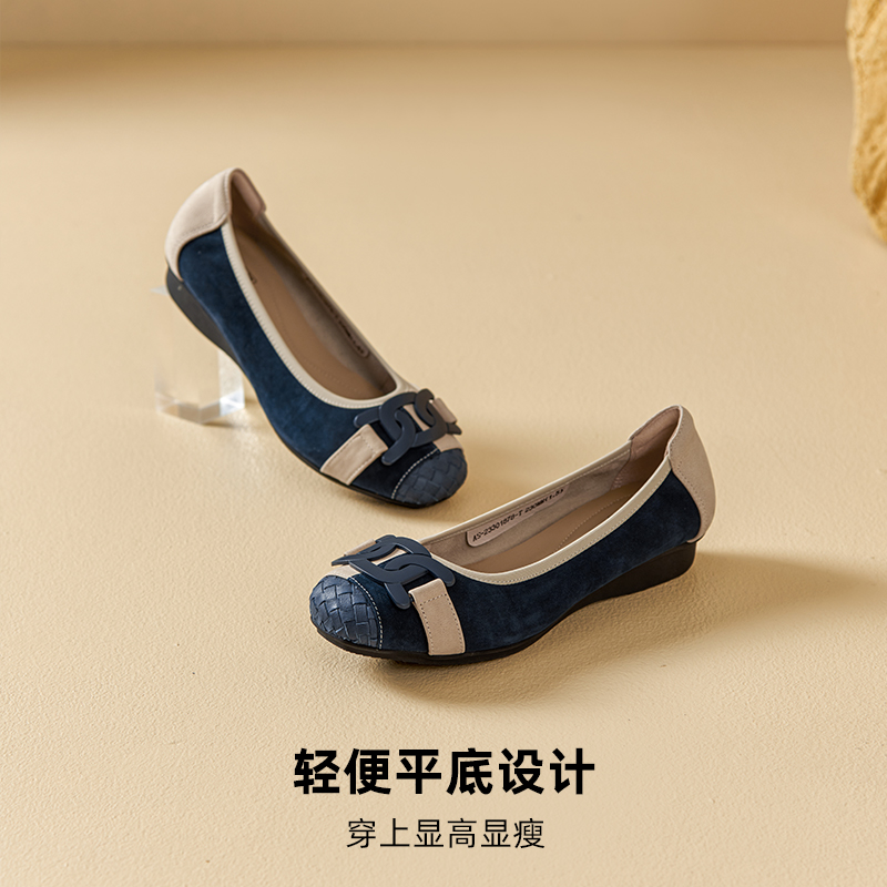 羊皮 圆头浅口舒适真皮一脚蹬妈妈鞋 平底单鞋 春季 子 女2025新款