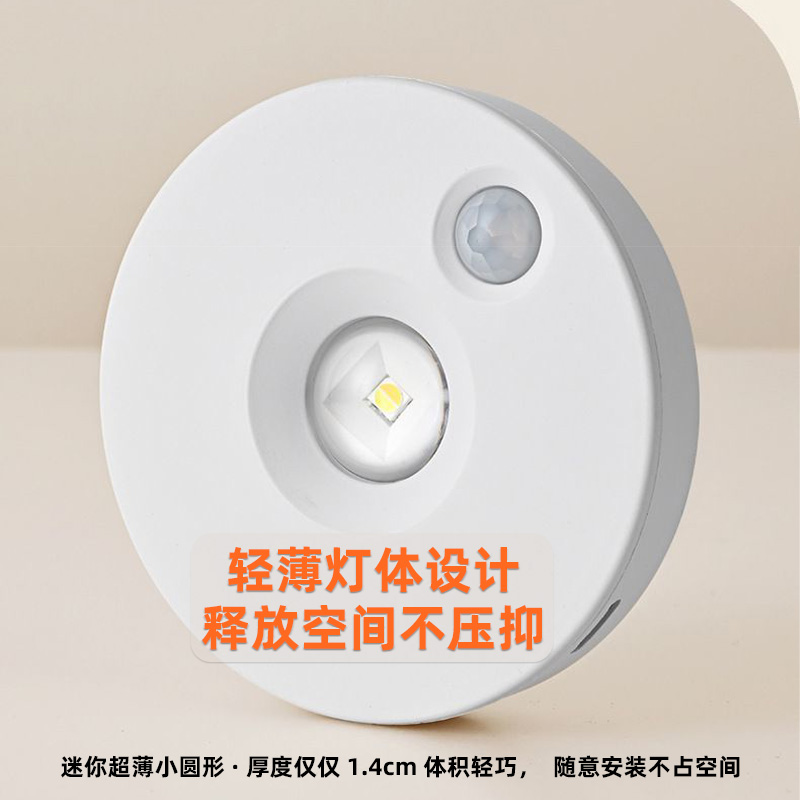 led智能人体感应灯无线磁吸小夜灯充电超长续航厨房衣柜卧室壁灯