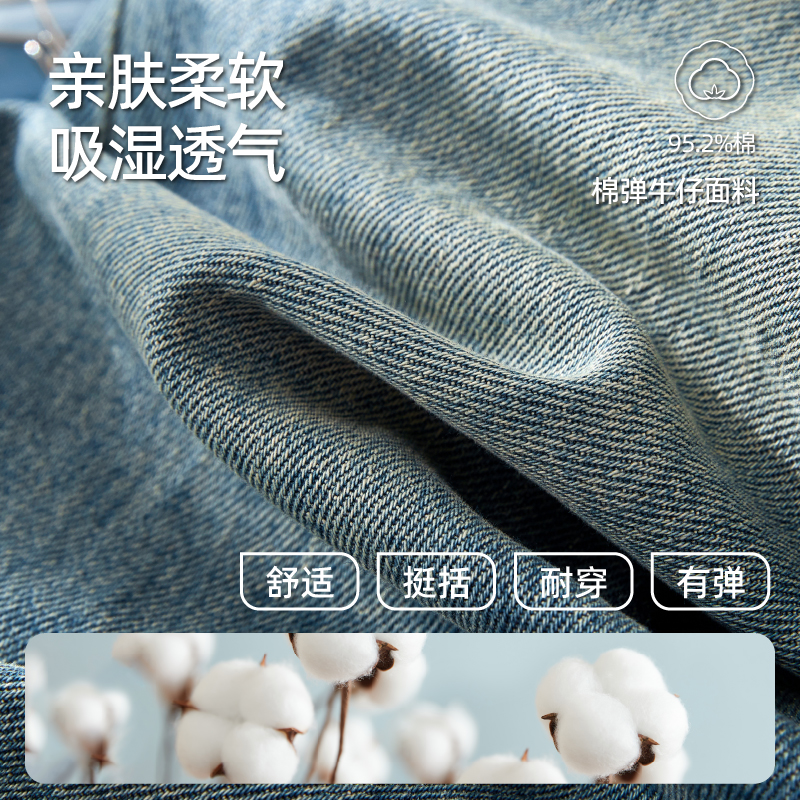 直腰长裤 三福2025夏季 时尚 休闲宽松直筒牛仔裤 男502021 男士