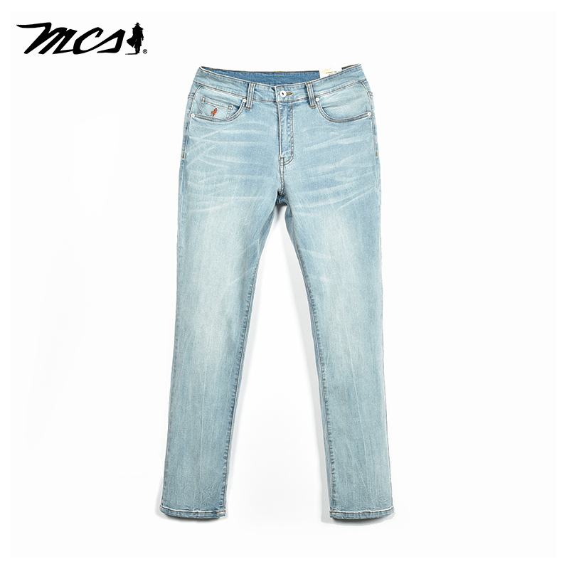 水洗牛仔裤 美式 男士 浅灰蓝色谢谢时尚 子 MCS男装 裤 源自万宝路春季