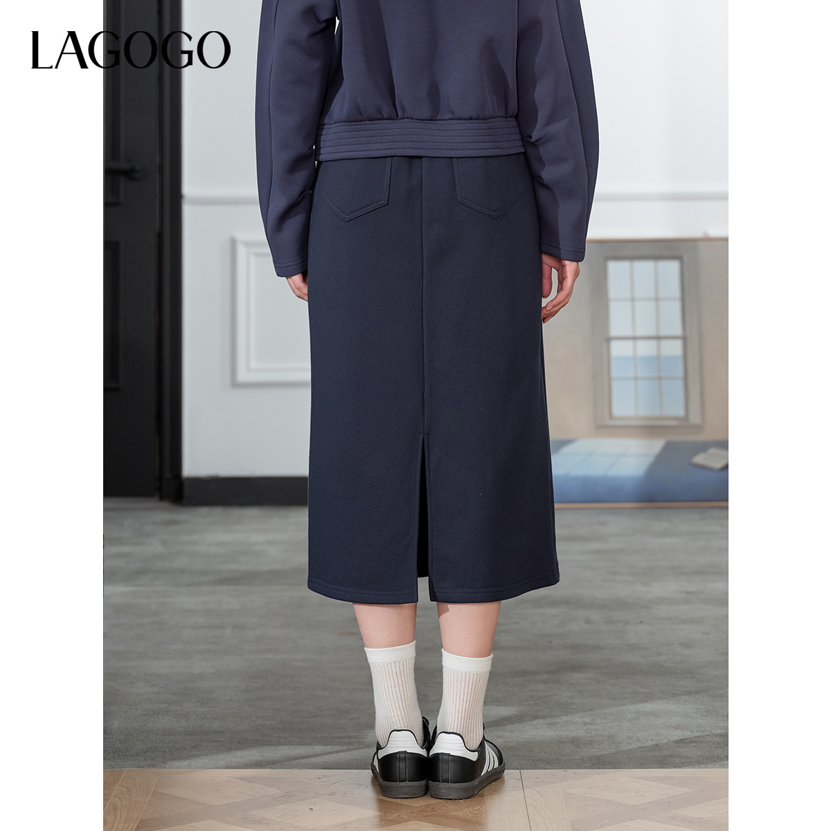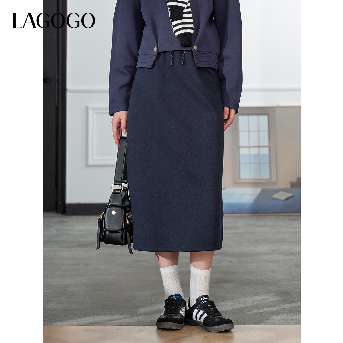 歌莉娅针织抓绒半身裙女秋冬流行穿搭高腰黑色包臀裙子1BSJ2D020