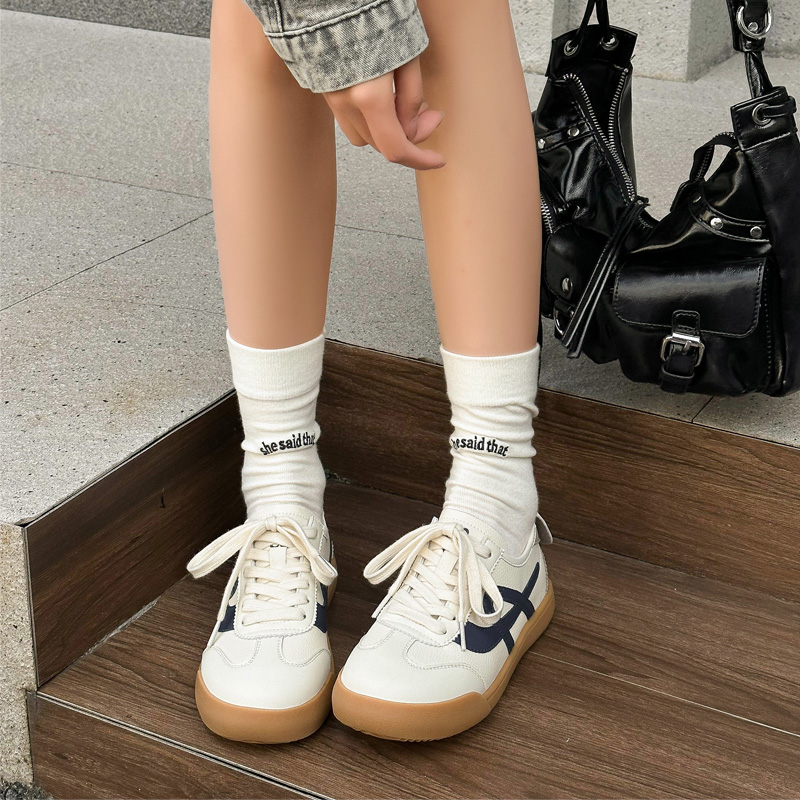 43真皮2025春季 新款 时尚 宽胖脚肥大码 百搭平底德训鞋 女鞋