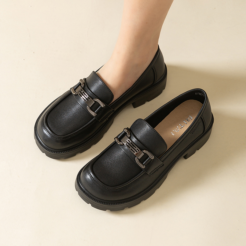 2025春夏新款 通勤鞋 简约厚底乐福鞋 浅口JK鞋 粗跟时尚 日泰女单鞋