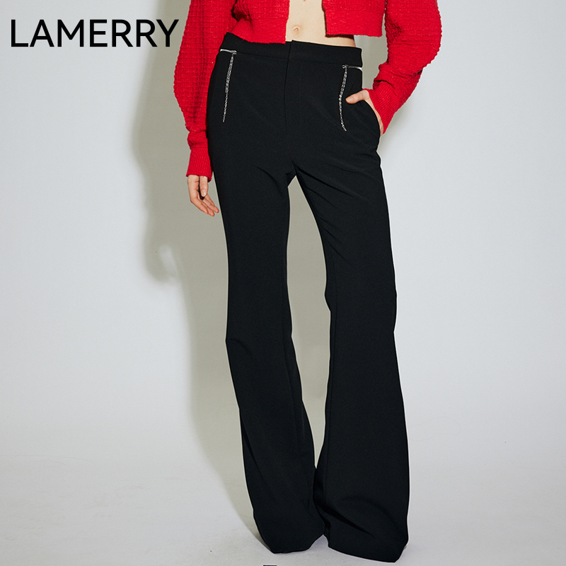 百搭2025春夏新款 女设计感个性 朗美睿黑色高腰休闲长裤 LAMERRY