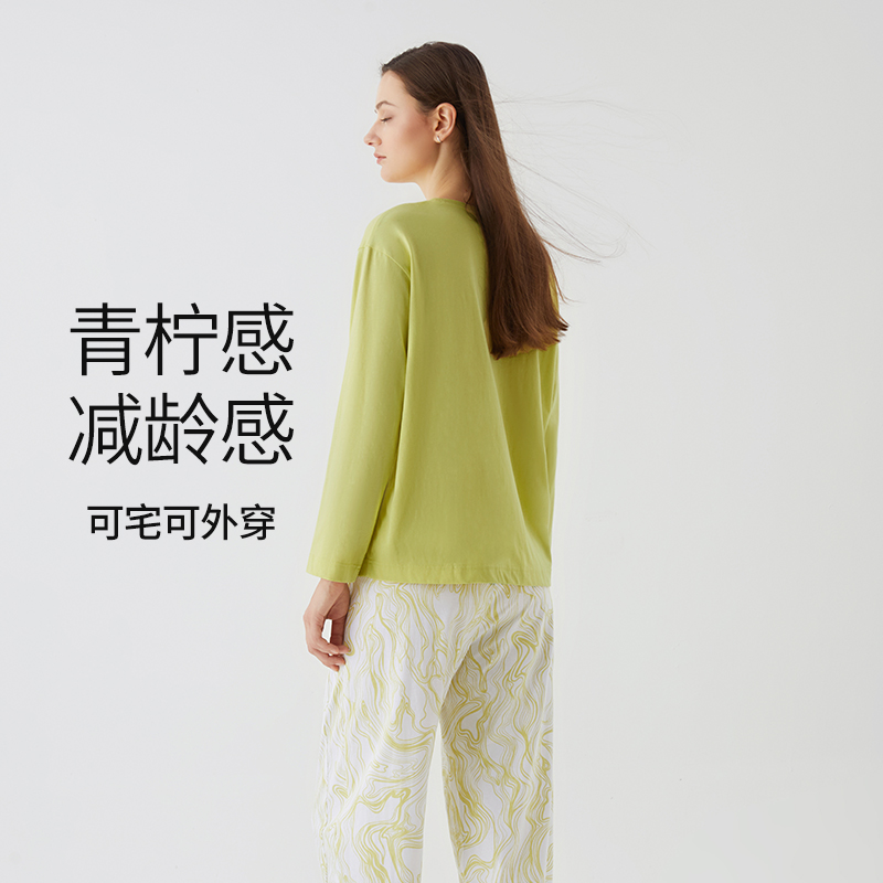 全棉时代睡衣男女士针织家居服情侣套装 7A抗菌除螨纯棉睡衣春秋季
