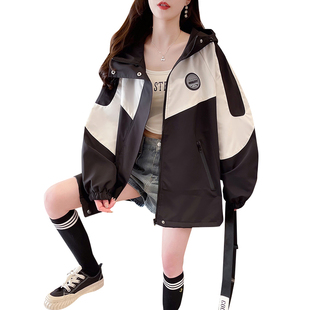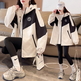 学生情侣休闲工装 宽松大码 风衣 拼接冲锋衣外套女2025春秋新款 美式