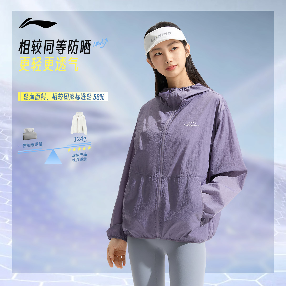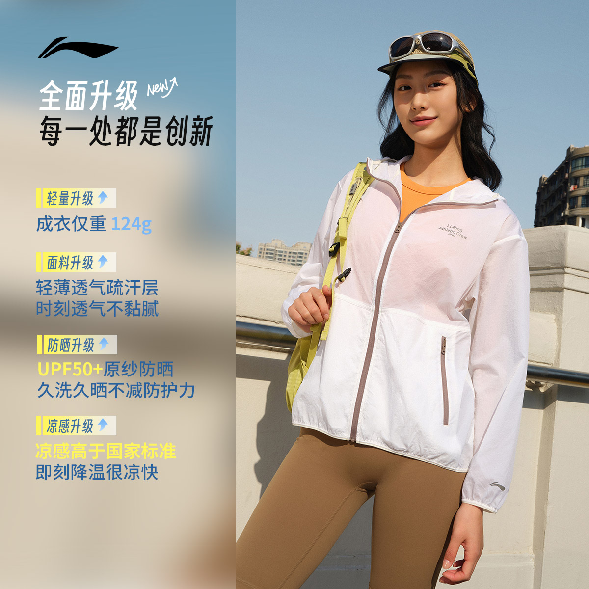李宁冰沙防晒衣女夏凉感抗紫外线薄透气轻户外皮肤衣运动外套连帽
