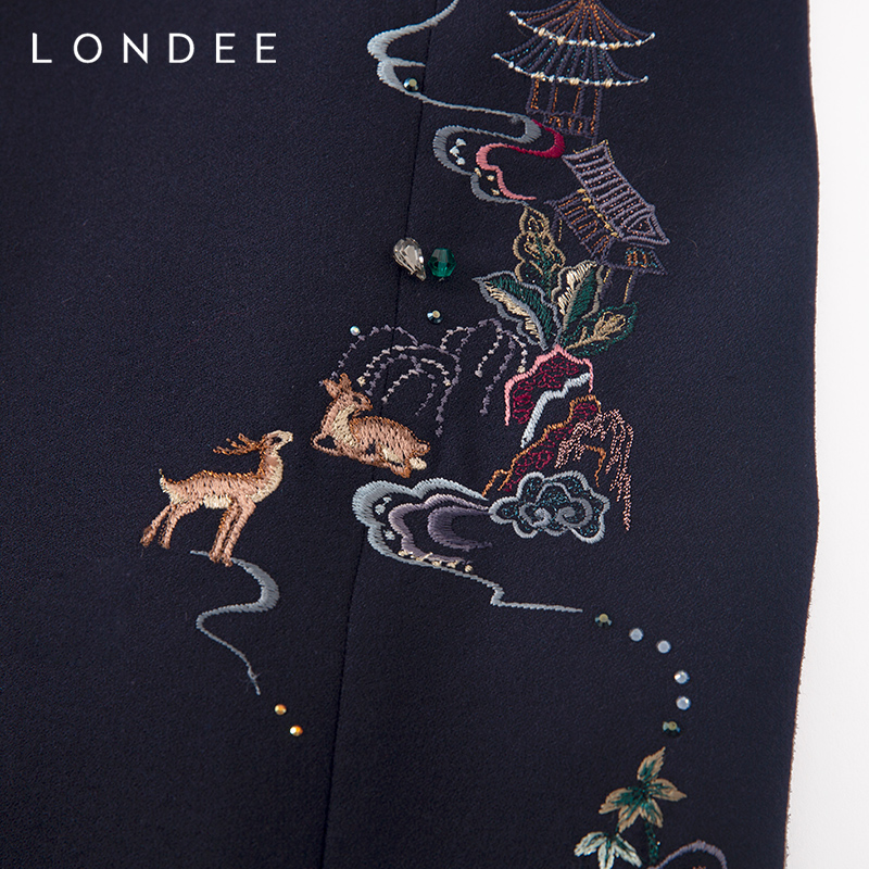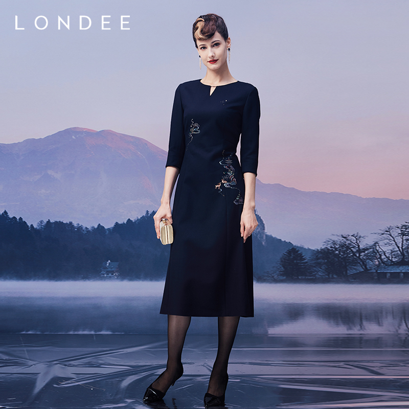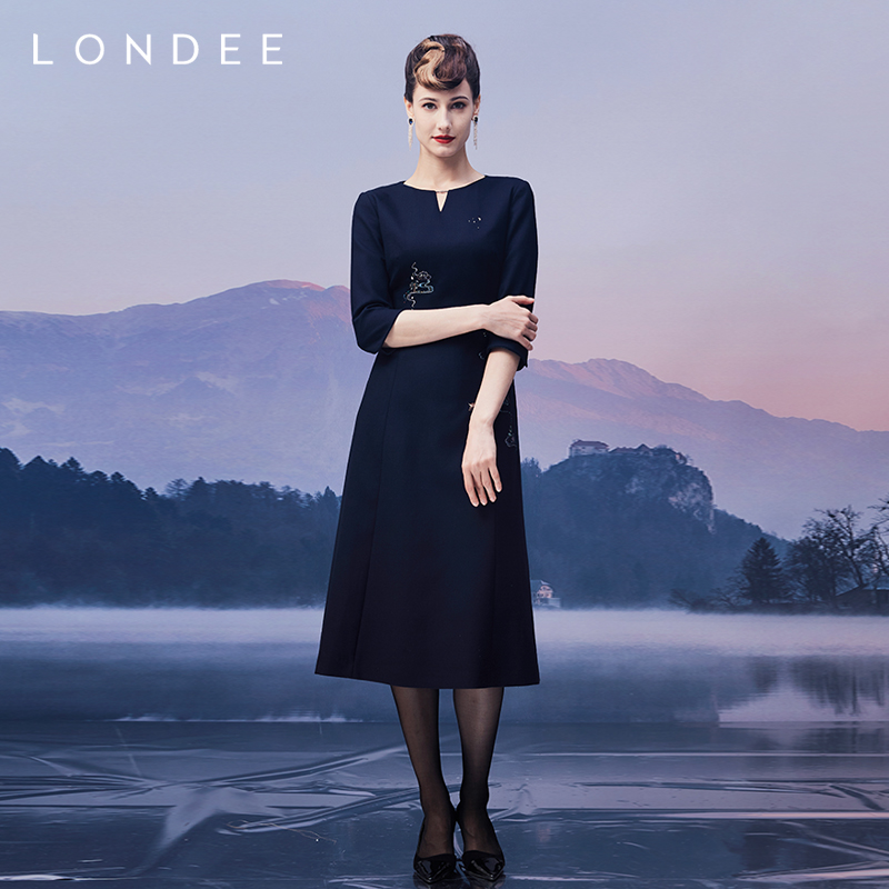Londee V领羊毛中长裙高级感日常通勤连衣裙2T21696 龙笛现代时尚