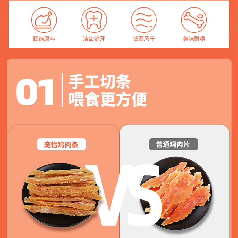 宠怡鸡胸肉狗狗零食美味鸡肉条硬丝泰迪金毛柯基幼犬训练奖励