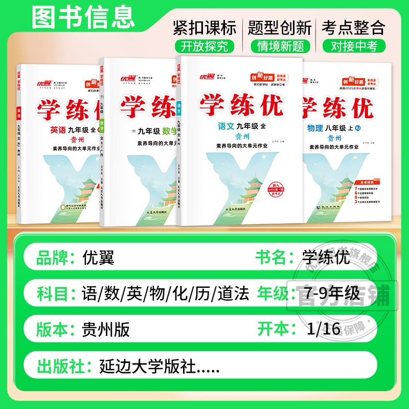 北师版 2025秋25春24优翼学练优初中七八九年级语文数学英语物理化学历史道德与法治九年级上下册人教版 789年级练习册 贵州专用