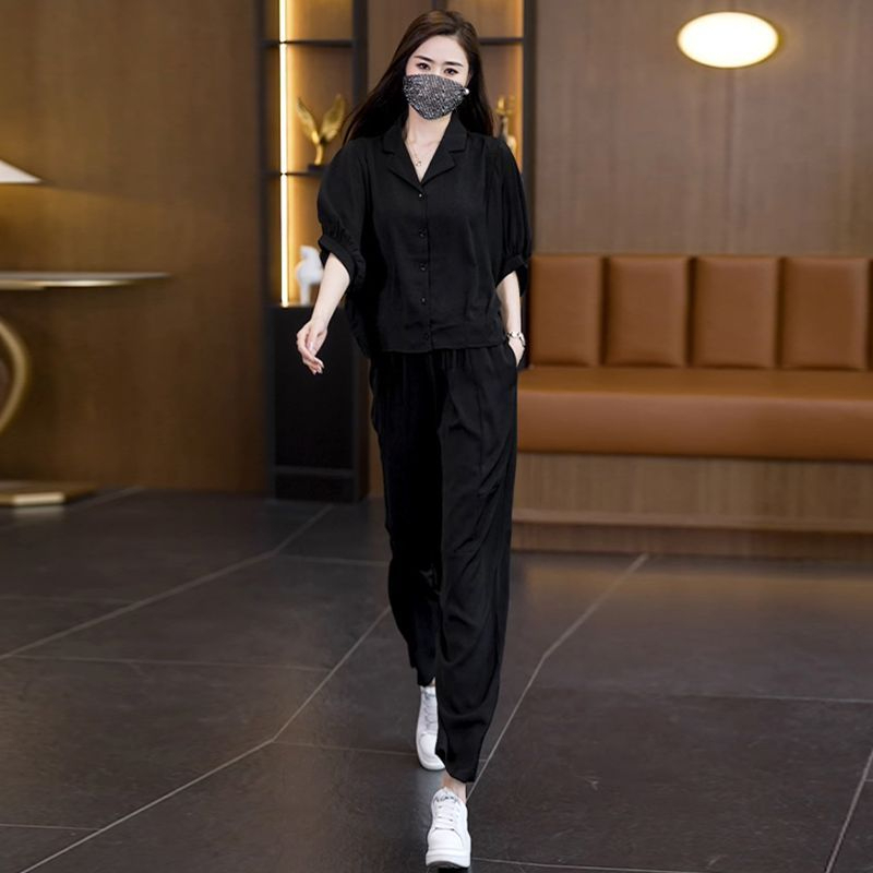 时尚 洋气大码 套装 宽松显瘦百搭哈伦裤 两件套 2024夏季 气质短袖 新款
