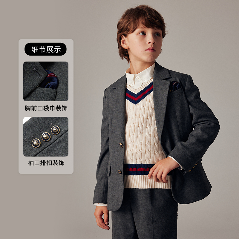 美式 eland 冬季 男童西装 绅士复古学院风单排扣外套 kids衣恋童装