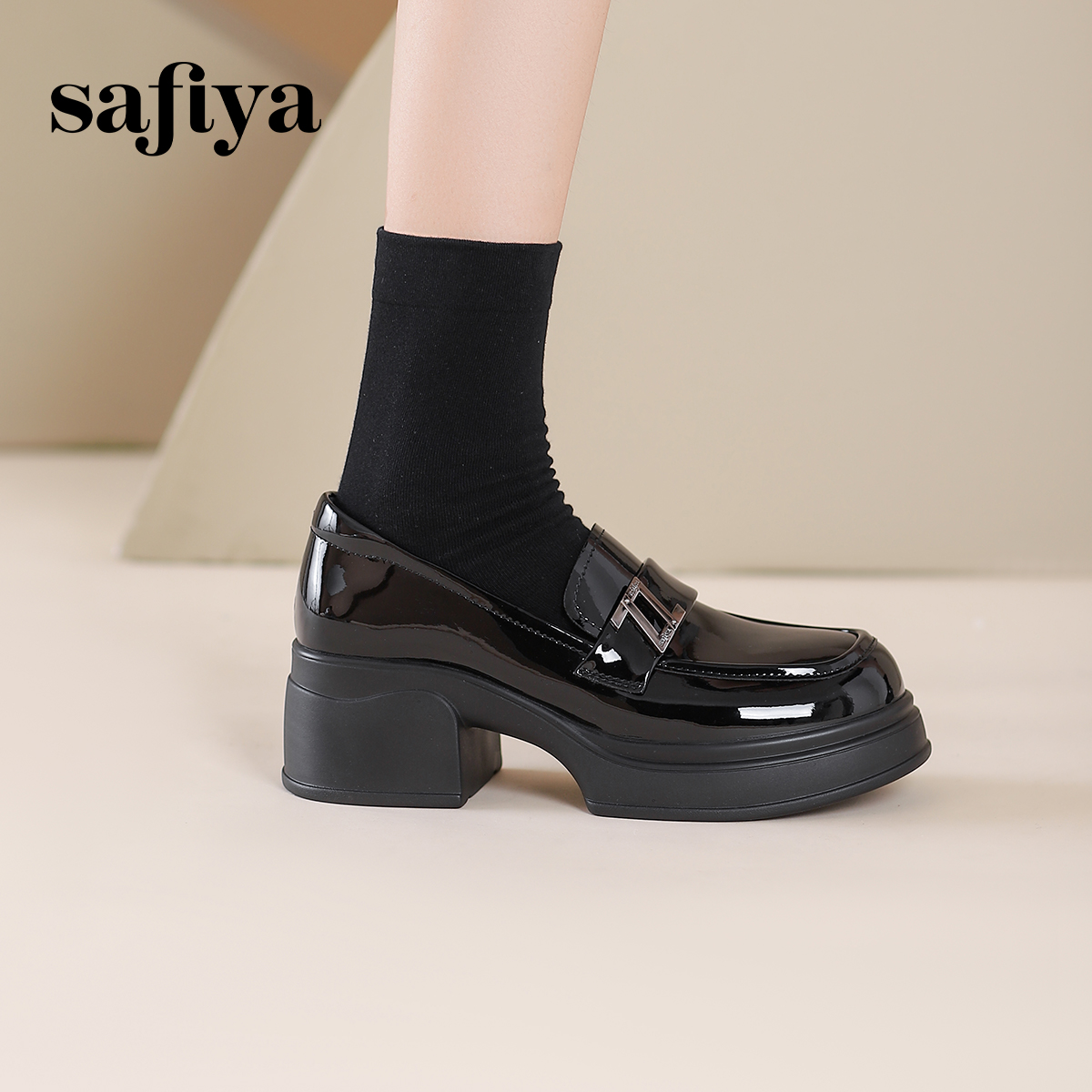 Safiya索菲娅学院风粗跟漆皮亮面百搭小个子增高厚底乐福鞋 女单鞋