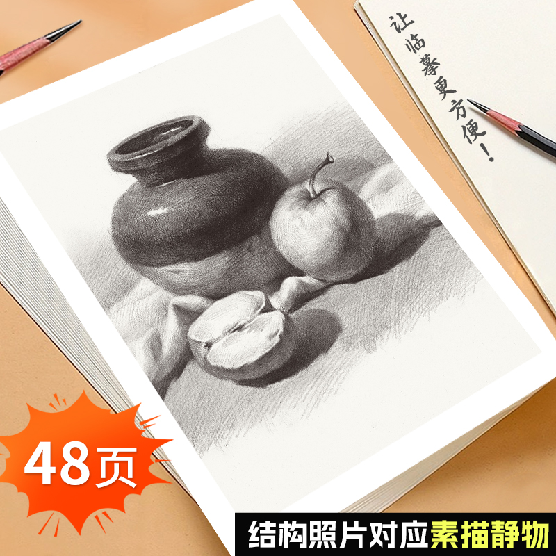 照片对画作品石膏像素描几何体静物临摹卡4册套装 照片对应完整几何体素描静物素描石膏像素描静物色调美术绘画入门临摹基础教程