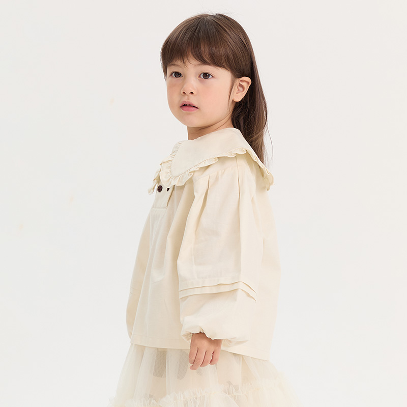 小个子中长款 白色花边V领灯笼长袖 新款 女秋季 收腰设计感上衣 衬衫